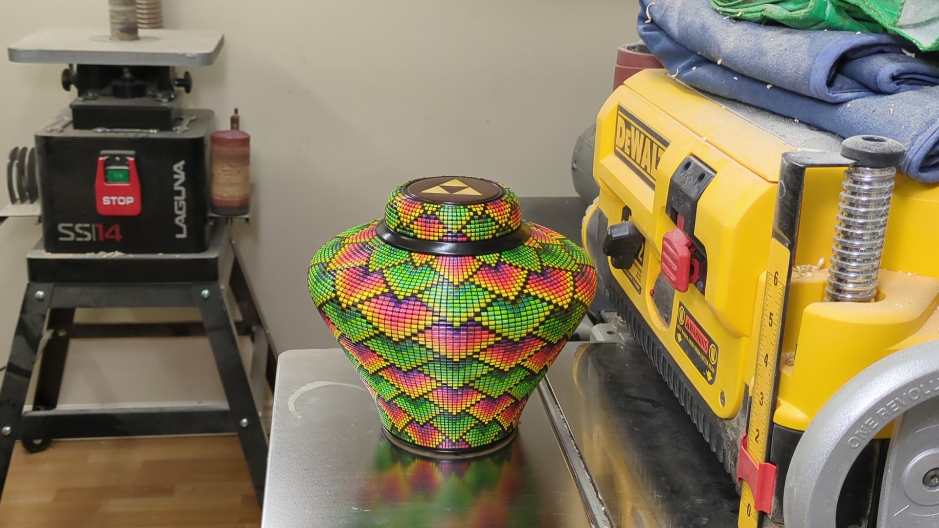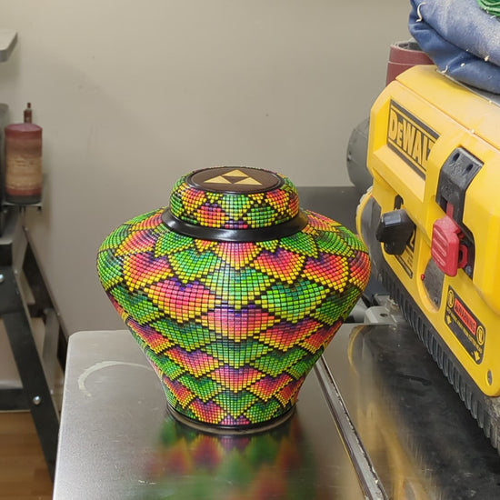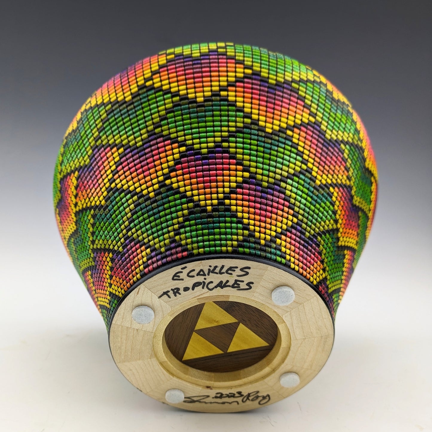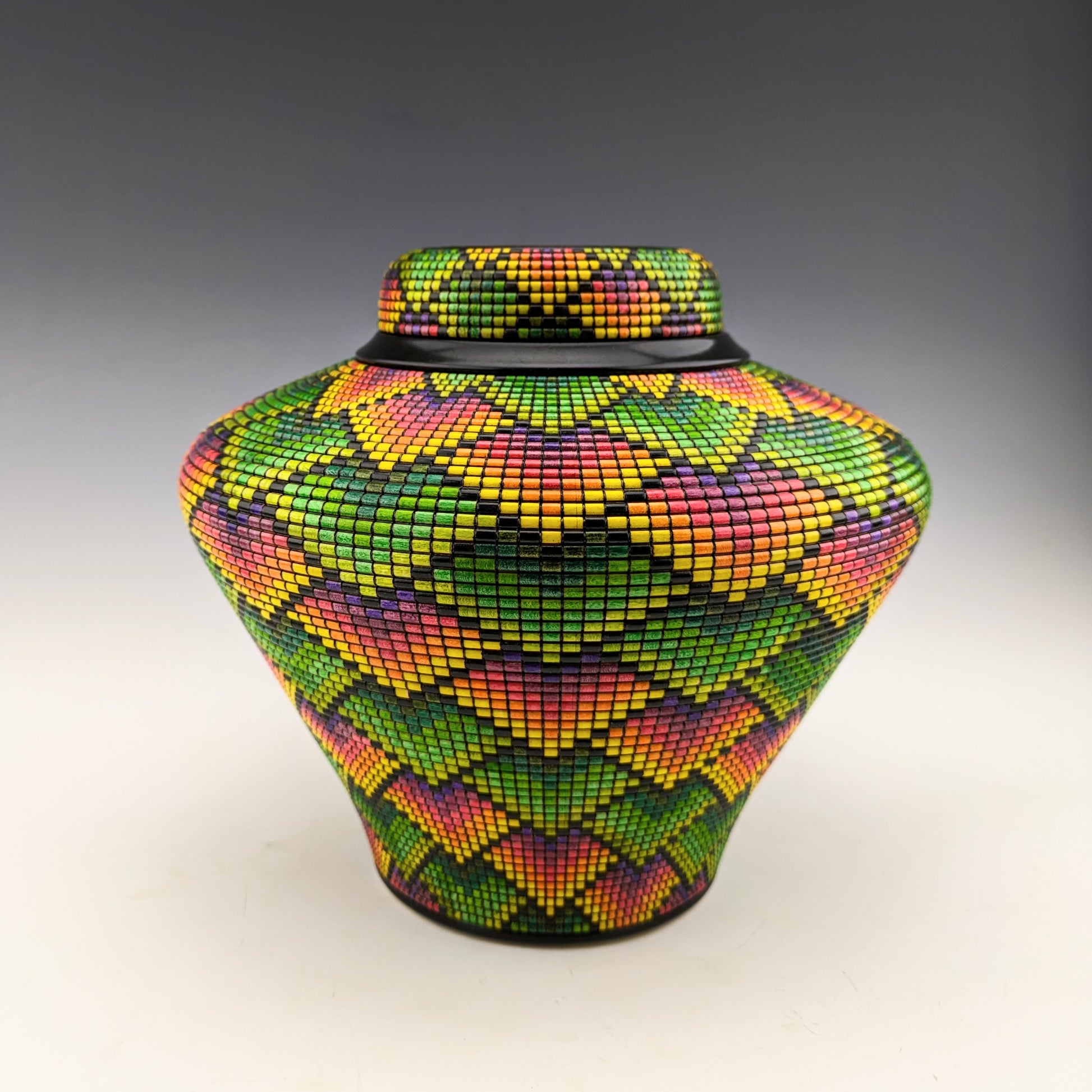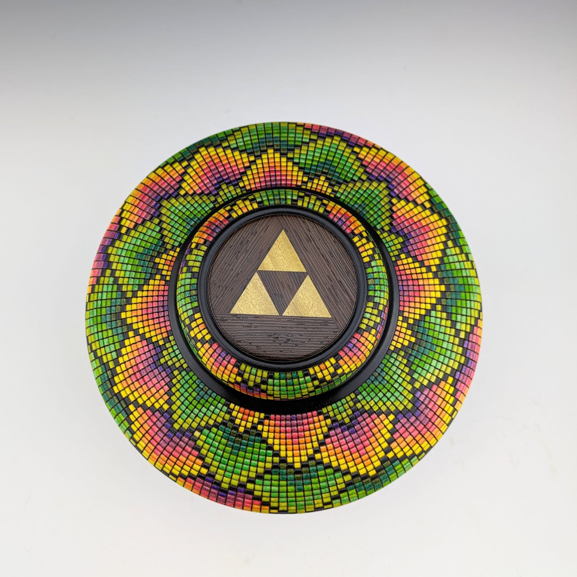 Pixelized vase made of maple, wenge and yellowheart.