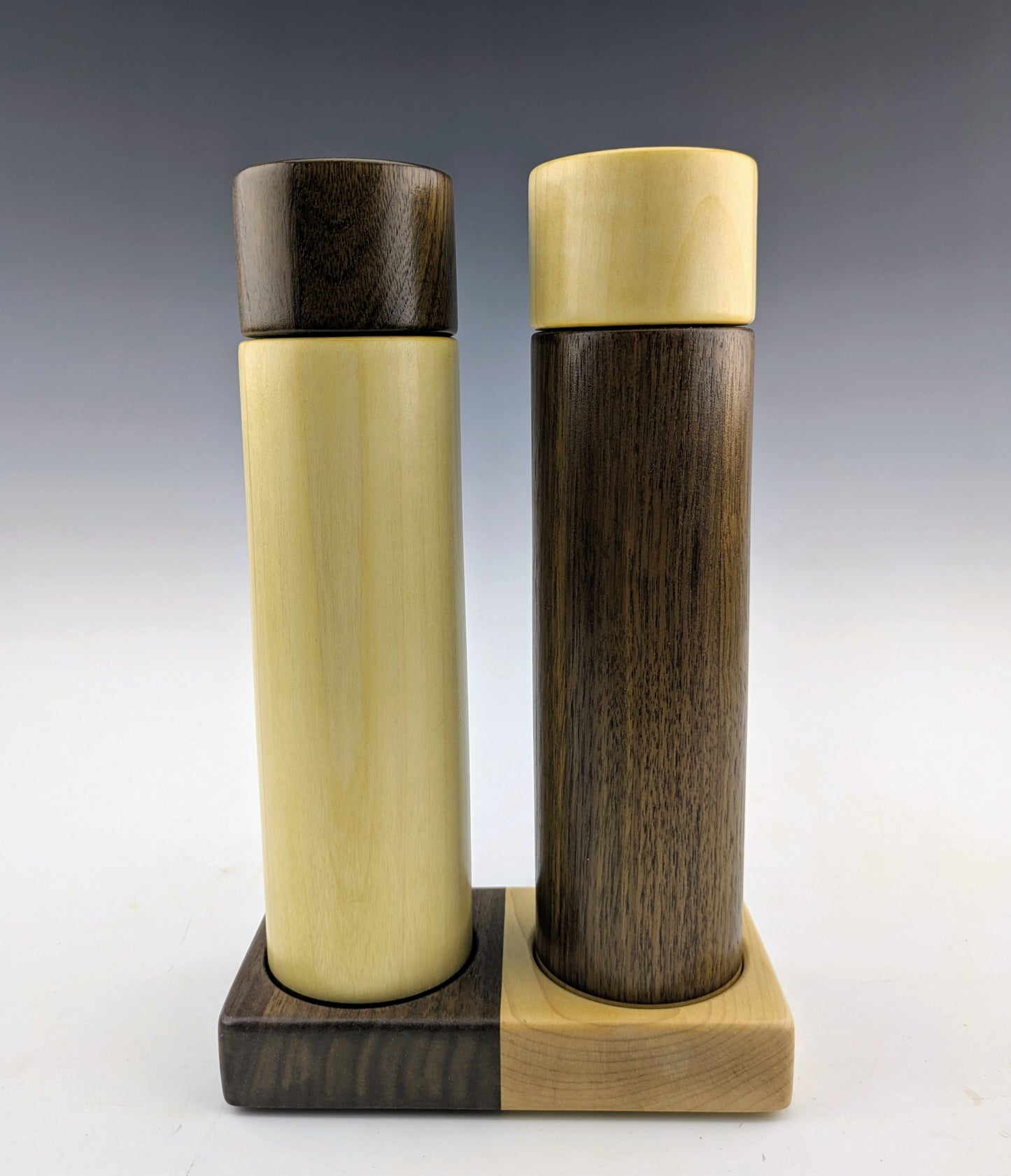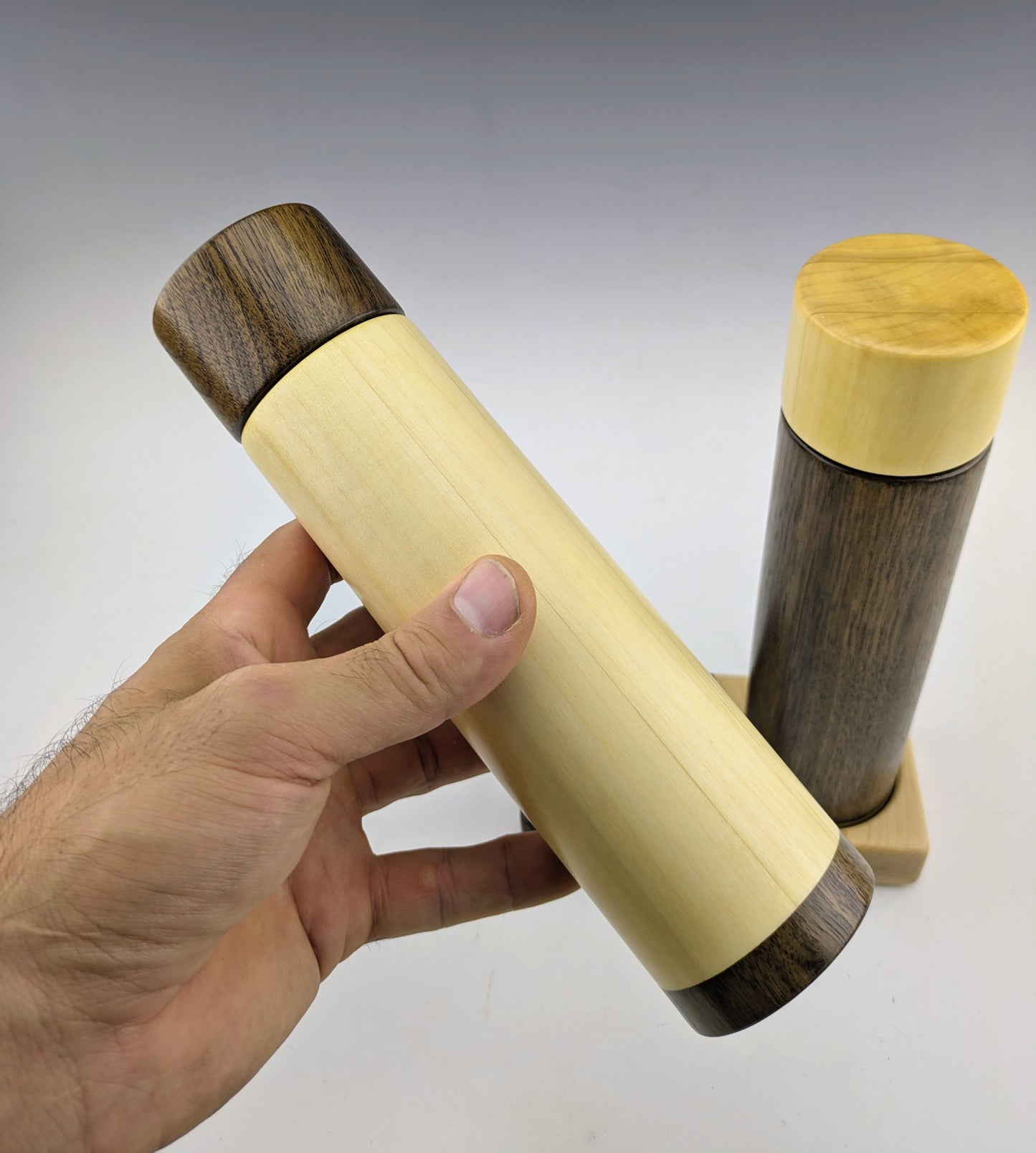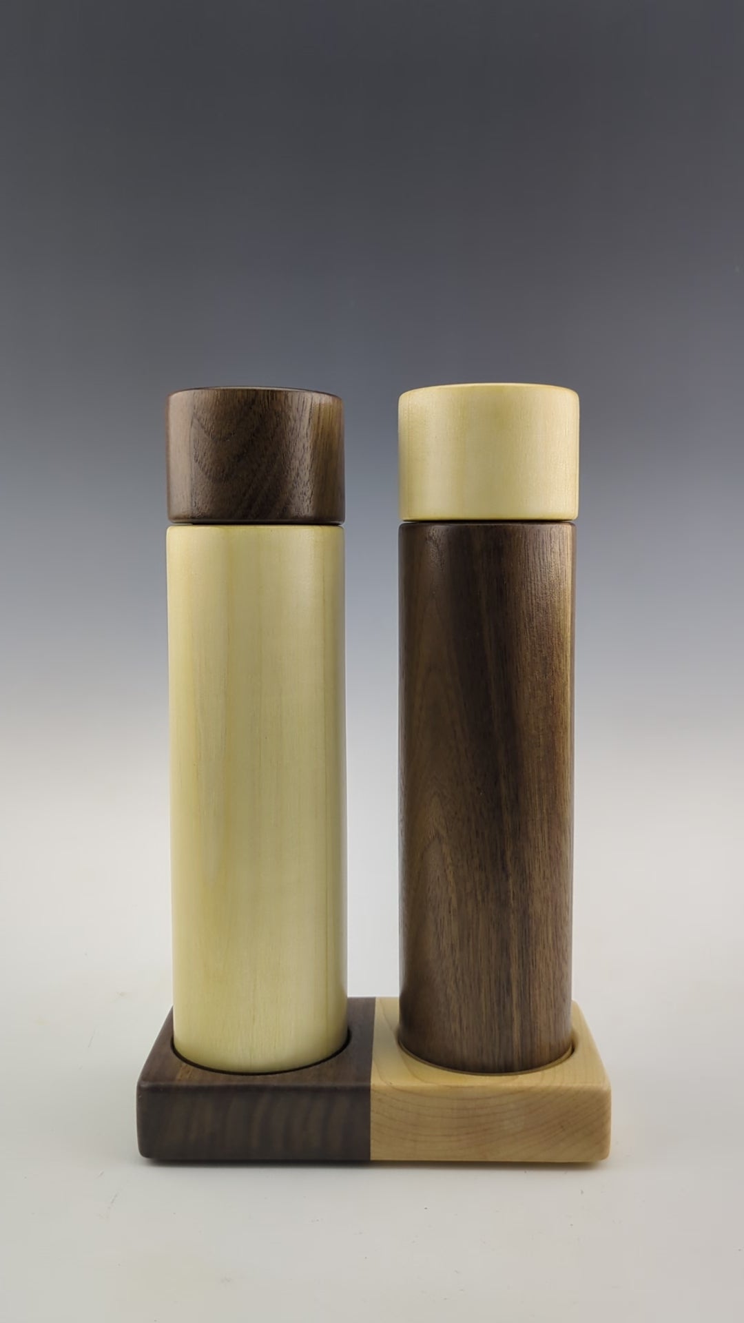 Moulins à épices fait de tremble, noyer et érable. J'utilise le mecanisme en céramique de marque Crushgrind dans tous mes moulins à épices. Ils sont ajustables et mouent une variétée d'épices, incluant les grains de poivre et le sel en gros cristaux.